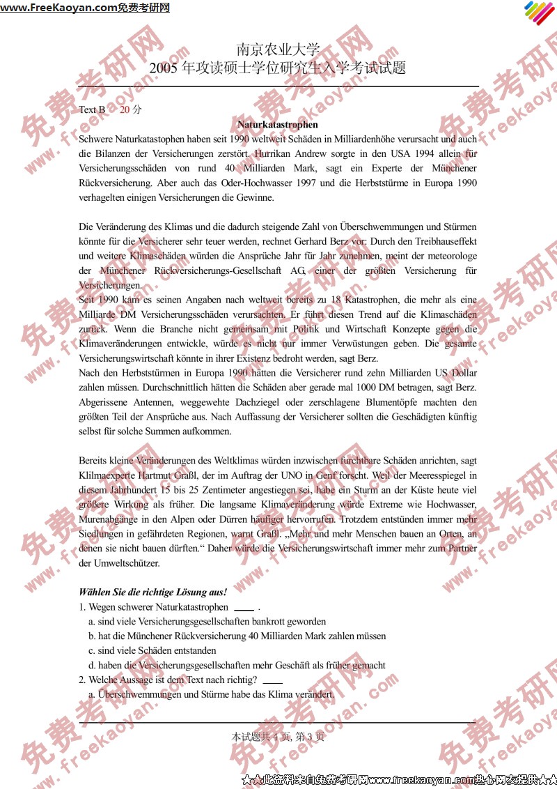 南京农业大学2005年考研真题-德语二外(3)