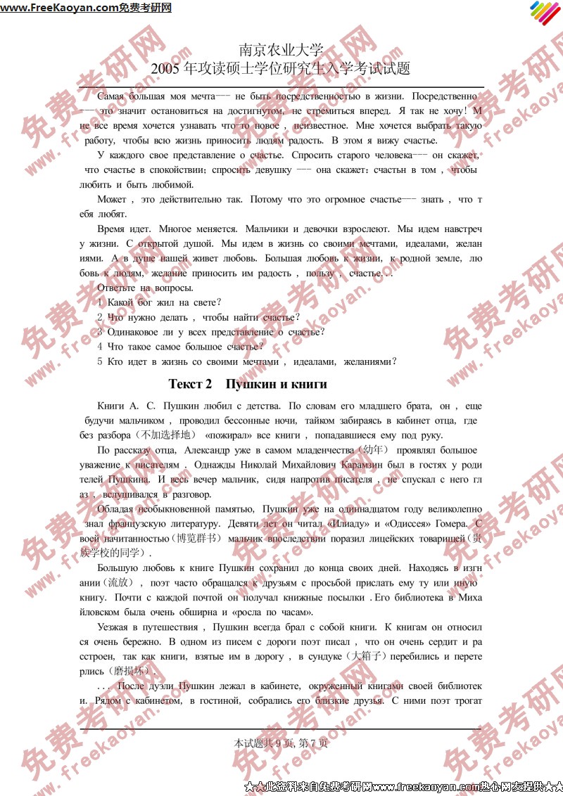 南京农业大学2005年考研真题-俄语二外(7)