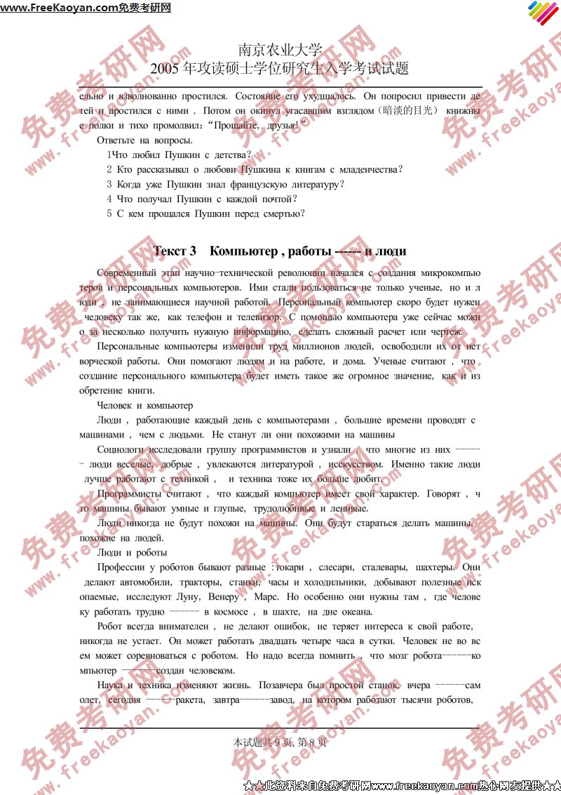 南京农业大学2005年考研真题-俄语二外(8)