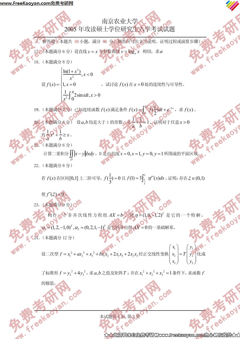 专业课考研经验 本站小编 FreeKaoyan 2018-01-23一, 名词解释5*6孔子 商鞅变法 史记 军机处 安史之乱 武昌起义二, 简答题10*41. 罢黜百家,独尊儒术 对中国历史的影响2. 大运河的开凿对中国历史的影响3. 爱新觉罗·玄烨对中国历史的贡献4. 洋务运动的意义三, 论述题 15*21. 试述唐代,明代,清代的赋役制度(分别指两税法、一条鞭 ...