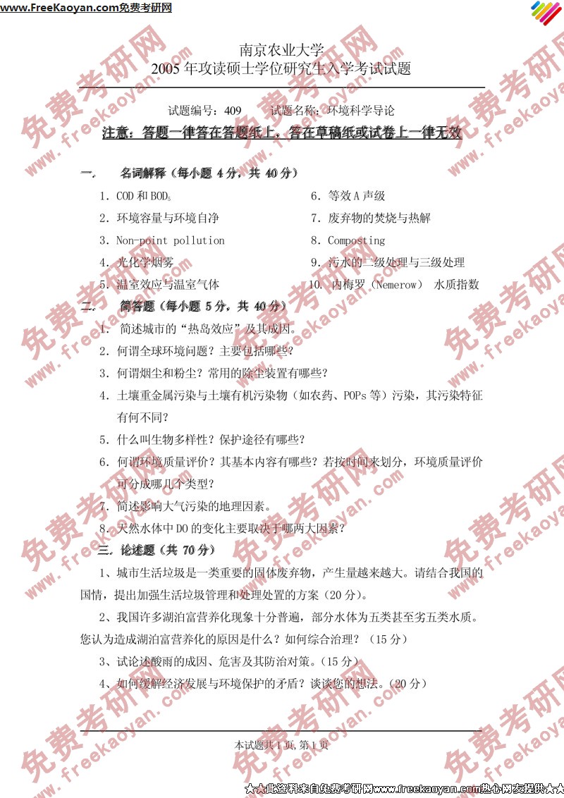 相关话题/考研真题 环境科学 南京农业大学 导论