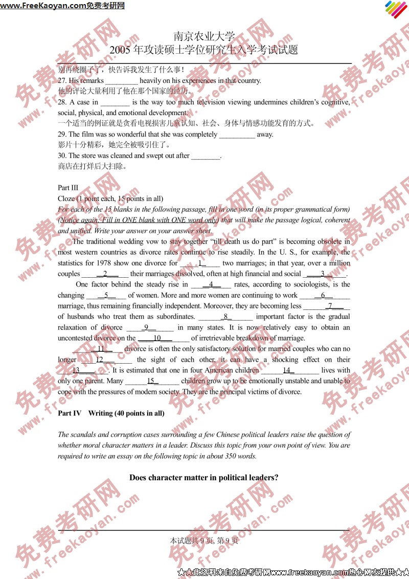 专业课考研经验 本站小编 FreeKaoyan 2018-01-23南京农业大学2005年考研真题-古代汉语