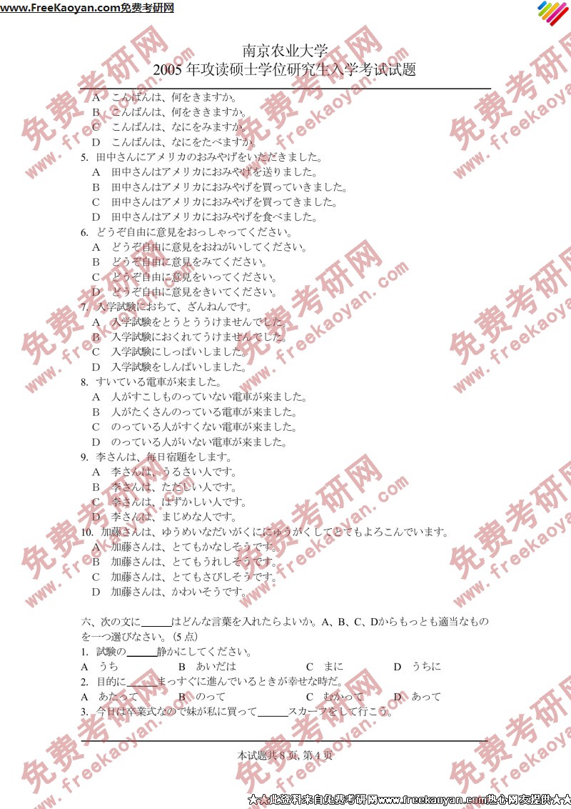 南京农业大学2005年考研真题-日语二外(4)