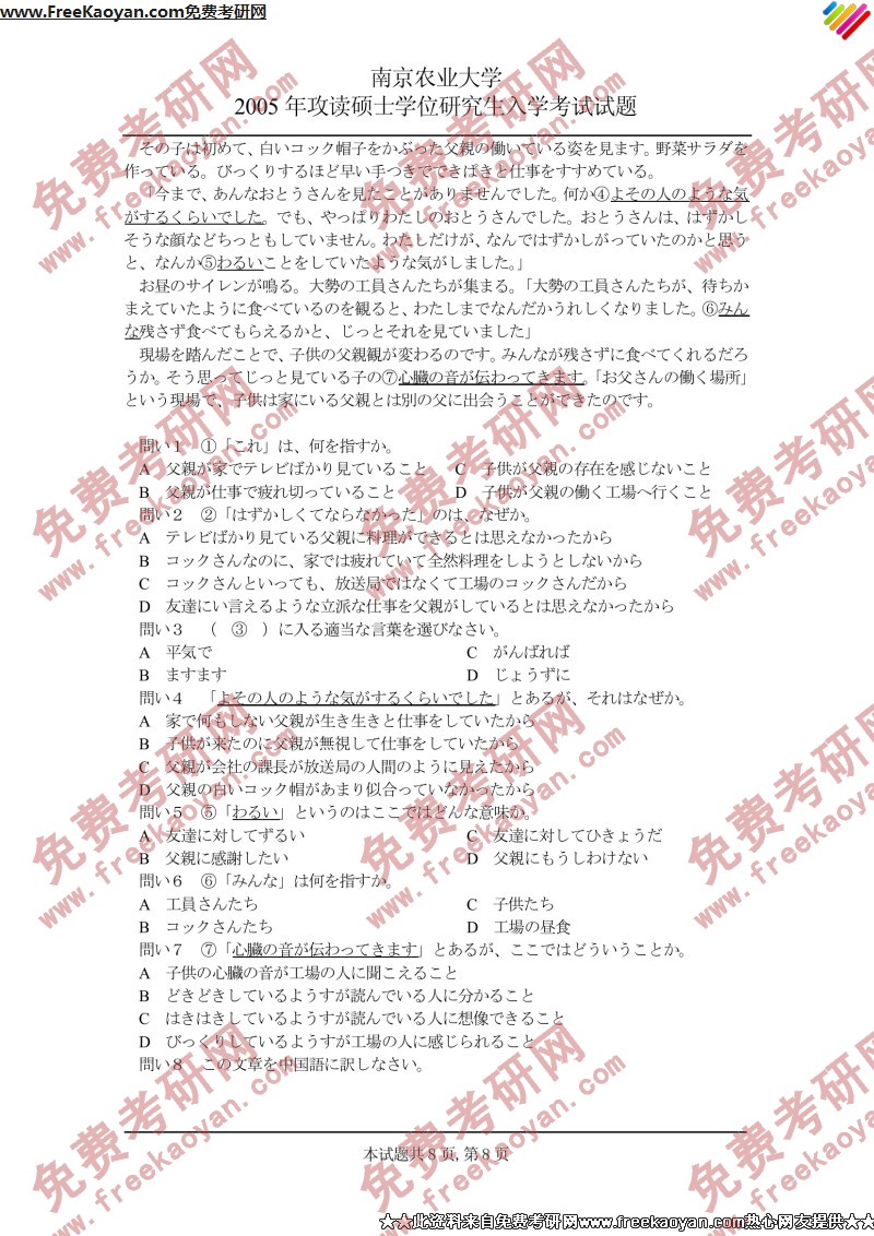 南京农业大学2005年考研真题-日语二外(8)
