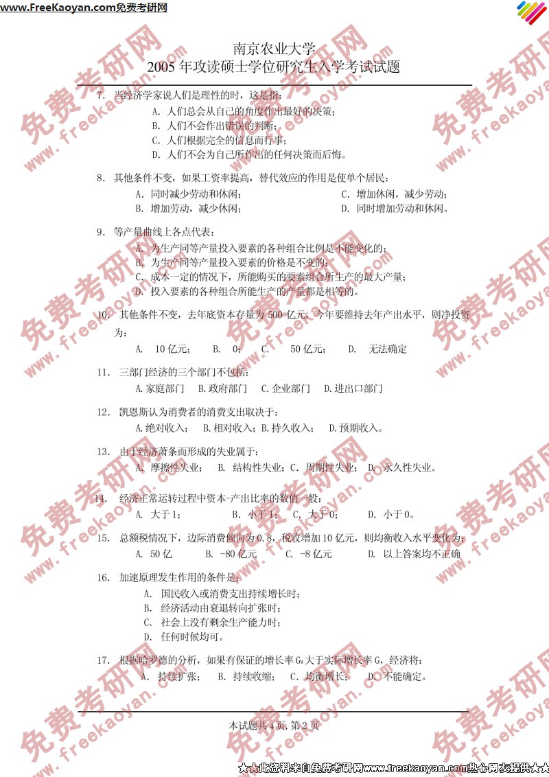 专业课考研经验 本站小编 FreeKaoyan 2018-01-23南京农业大学2005年考研真题-土地经济学