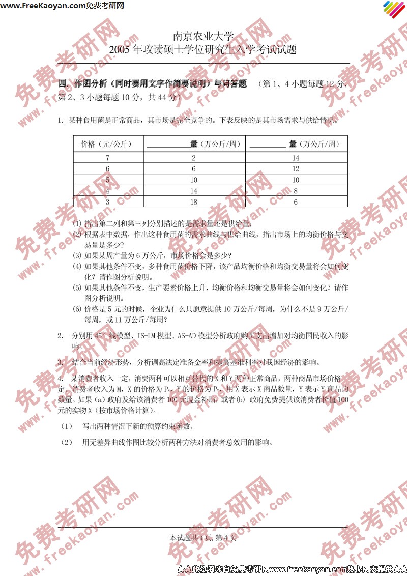 专业课考研经验 本站小编 FreeKaoyan 2018-01-23南京农业大学2005年考研真题-土地经济学
