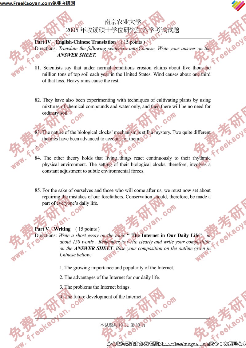 南京农业大学2005年考研真题-英语(单)(10)