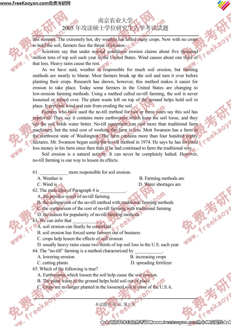 南京农业大学2005年考研真题-英语(单)(5)