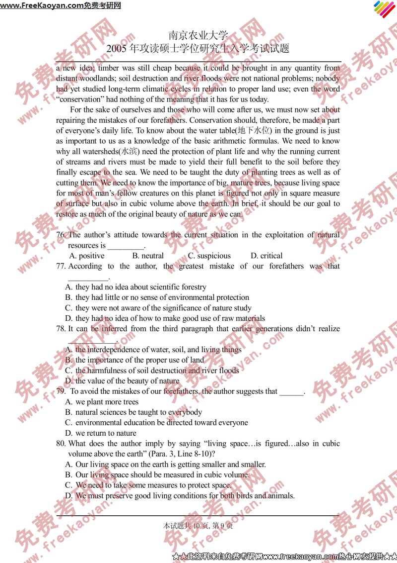 专业课考研经验 本站小编 FreeKaoyan 2018-01-23南京农业大学2005年考研真题-文献信息学