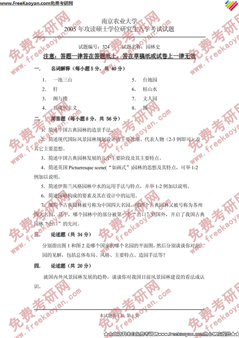 专业课考研经验 本站小编 FreeKaoyan 2018-01-23南京农业大学2005年考研真题-英语(单)