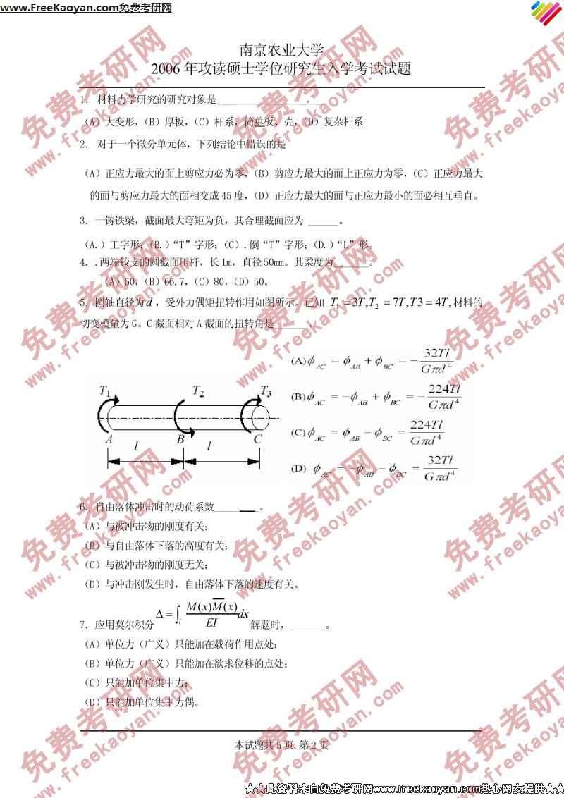 相关话题/南京农业大学 考研真题 材料力学