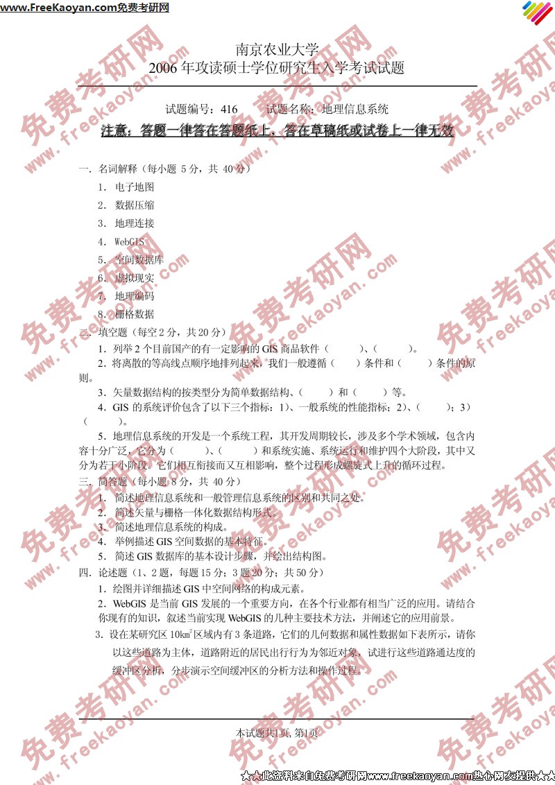 专业课考研经验 本站小编 FreeKaoyan 2018-01-23南京农业大学2005年考研真题-园林规划设计