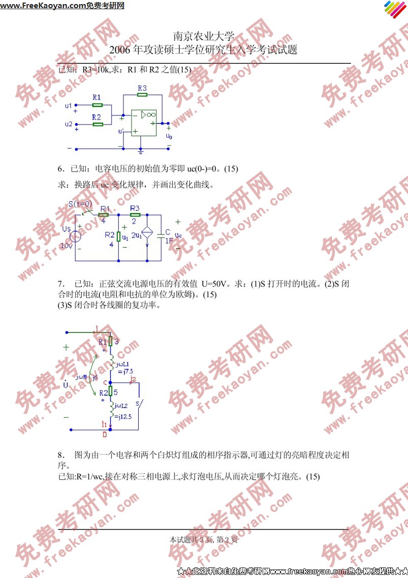 南京农业大学2006年考研真题-电路(2)