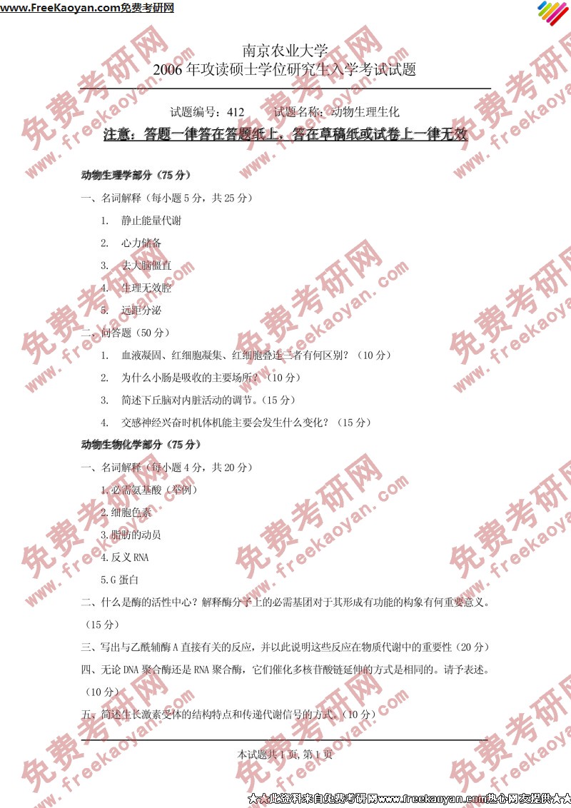 相关话题/动物 考研真题 南京农业大学 生理 生化