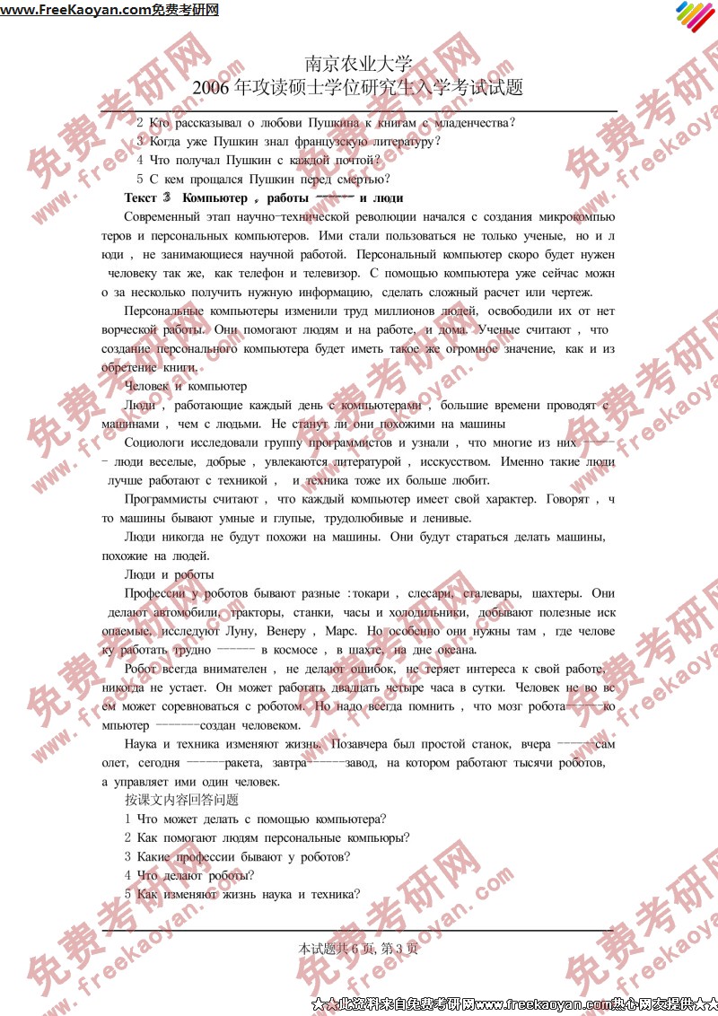 南京农业大学2006年考研真题-俄语二外(3)