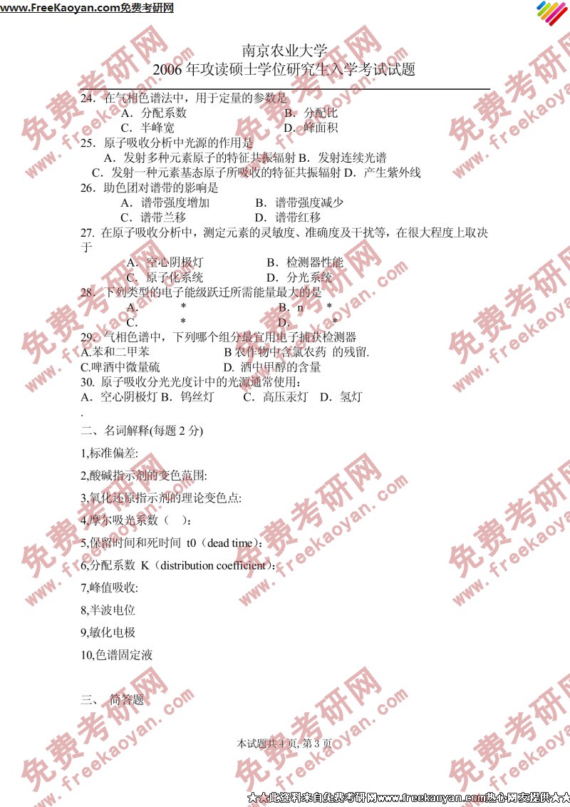 专业课考研经验 本站小编 FreeKaoyan 2018-01-23南京农业大学2006年考研真题-动物生理生化
