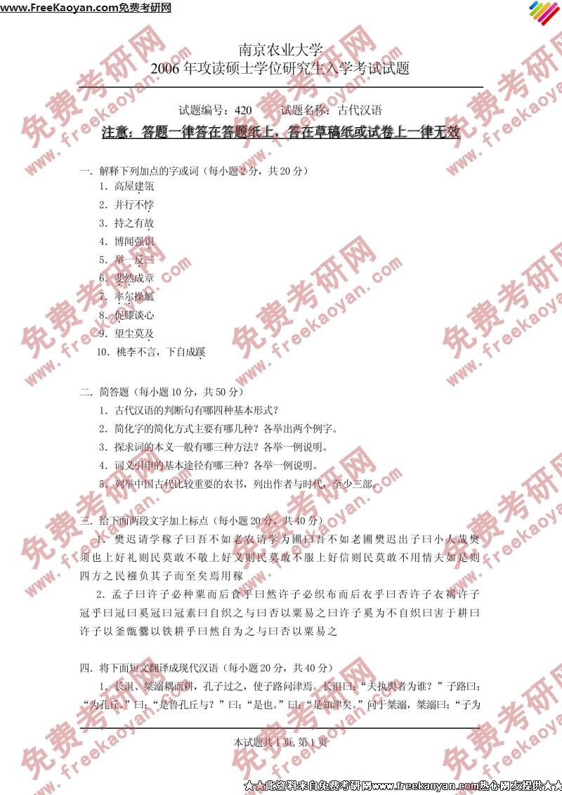 相关话题/南京农业大学 考研真题 古代汉语