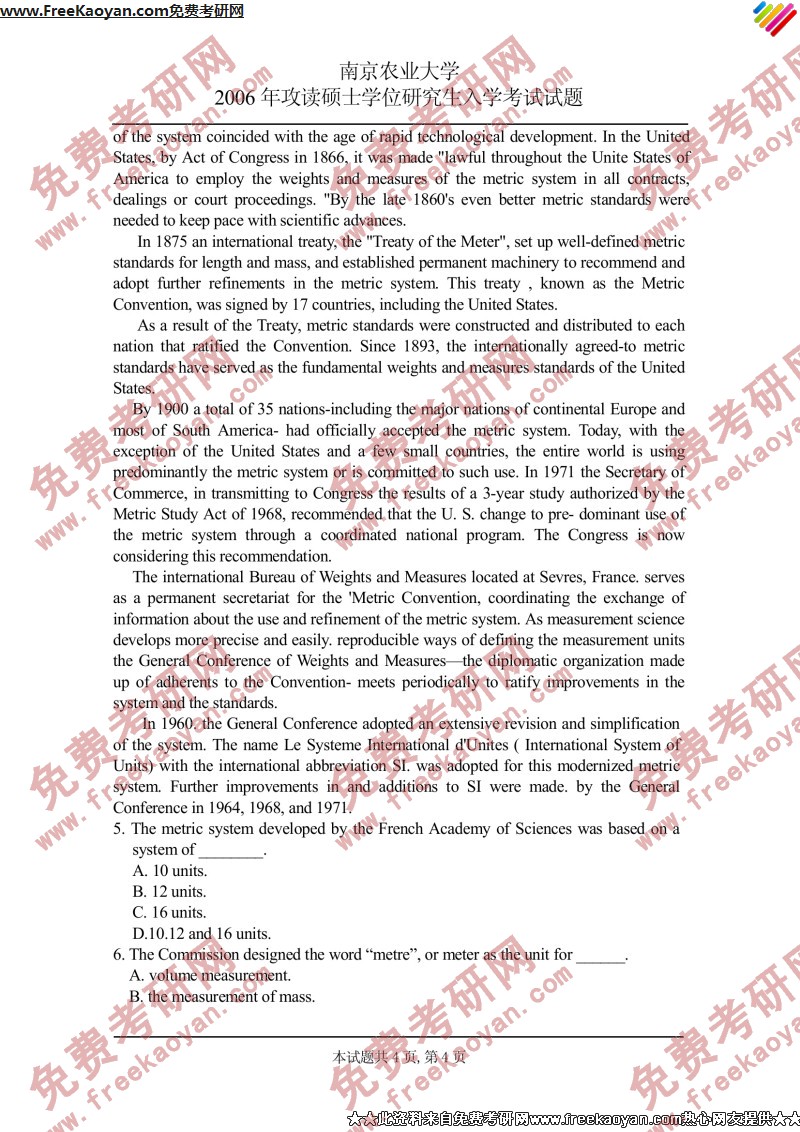 南京农业大学2006年考研真题-基础英语(4)