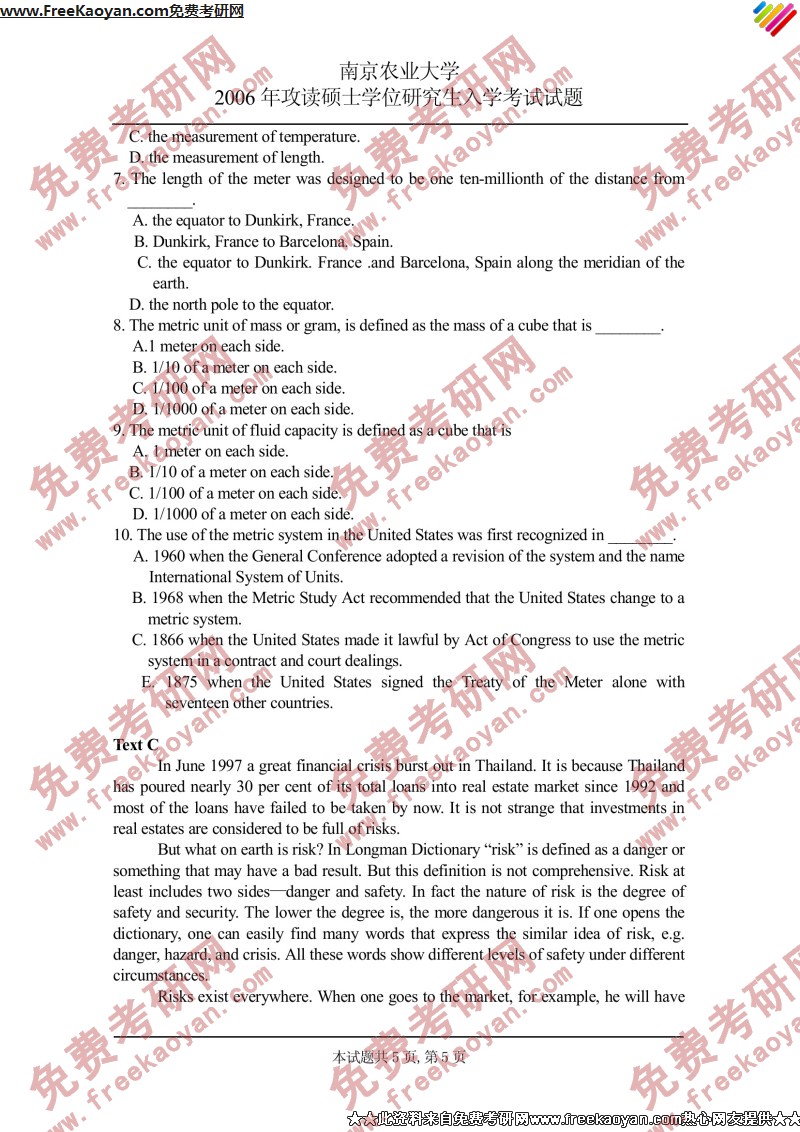 南京农业大学2006年考研真题-基础英语(5)