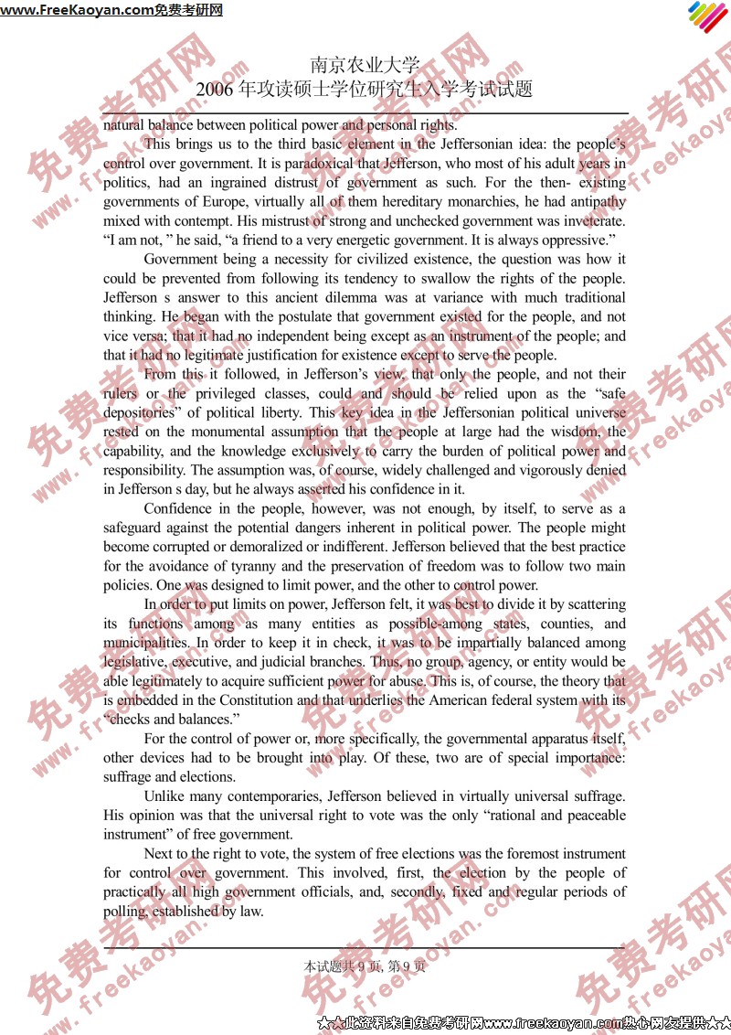 专业课考研经验 本站小编 FreeKaoyan 2018-01-23南京农业大学2006年考研真题-古代汉语