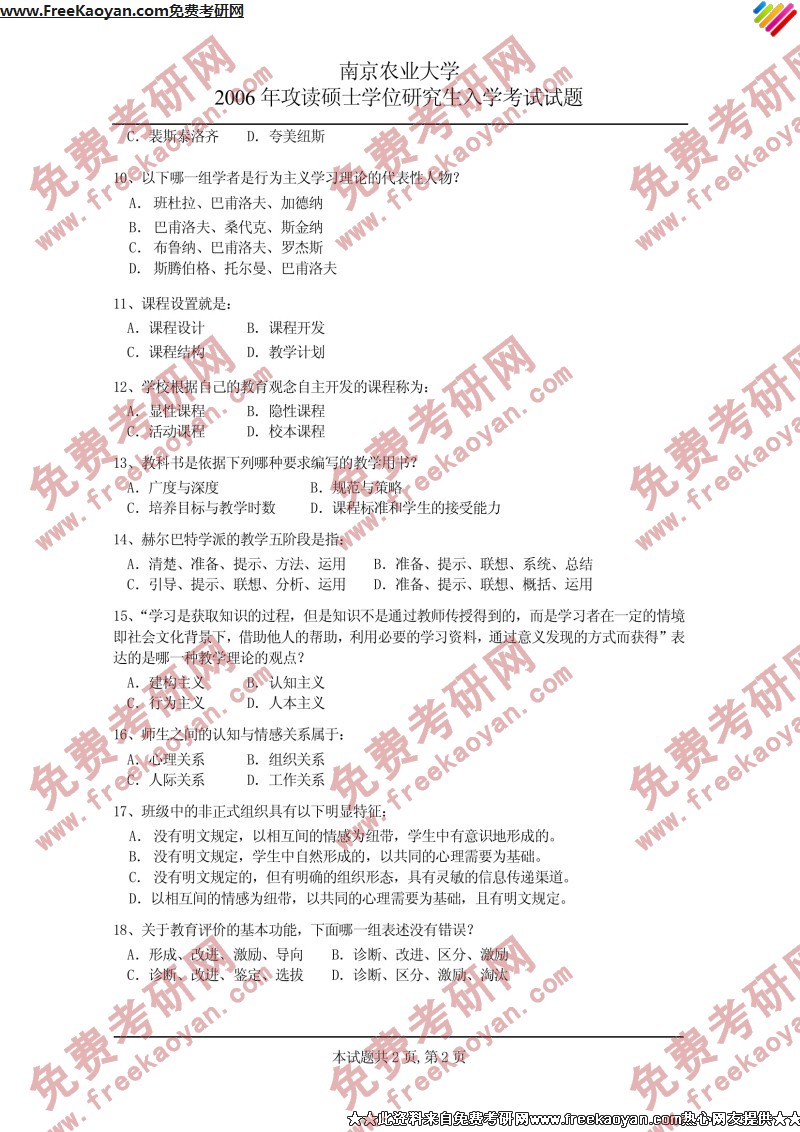 相关话题/南京农业大学 考研真题 教育学