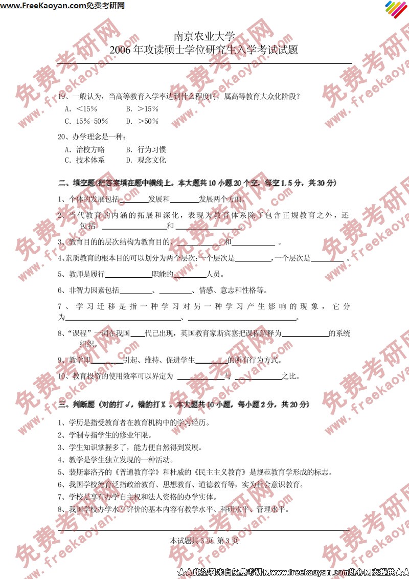 专业课考研经验 本站小编 FreeKaoyan 2018-01-23南京农业大学2006年考研真题-基础英语