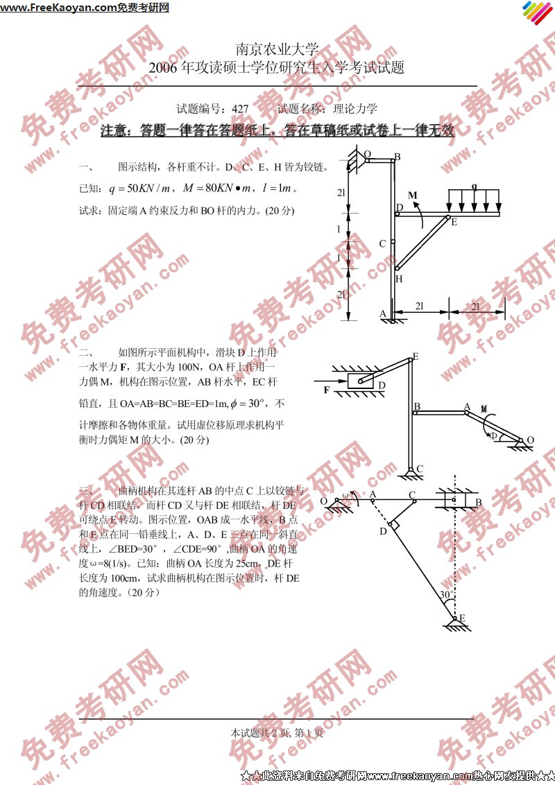 南京农业大学2006年考研真题-理论力学