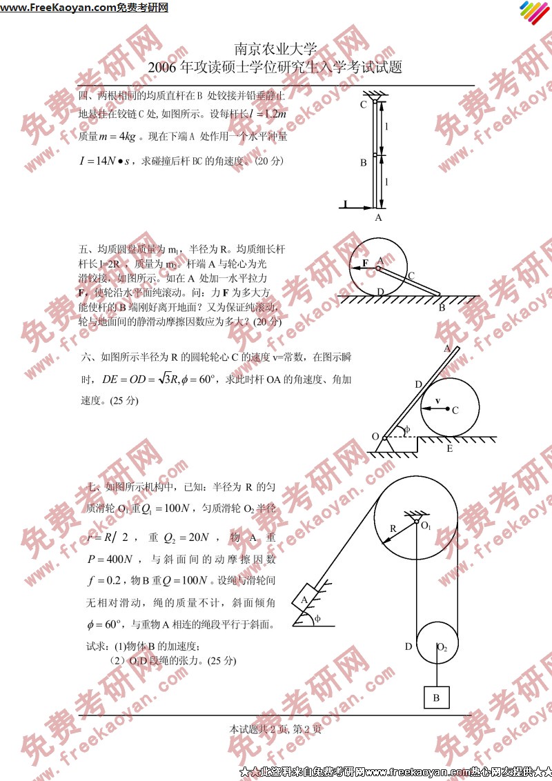 专业课考研经验 本站小编 FreeKaoyan 2018-01-23南京农业大学2006年考研真题-高等数学