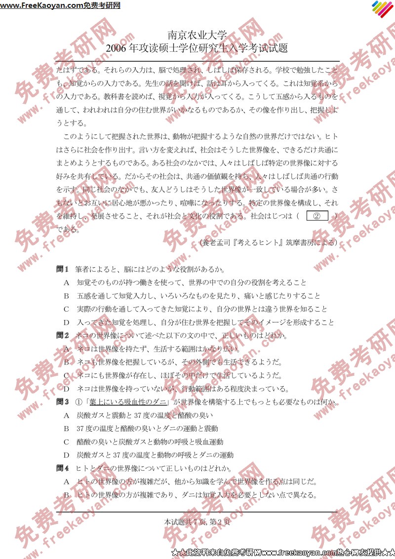 南京农业大学2006年考研真题-日语读解与写作(2)