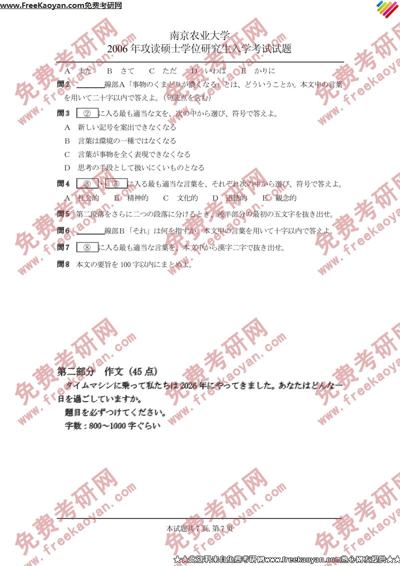 南京农业大学2006年考研真题-日语读解与写作(7)