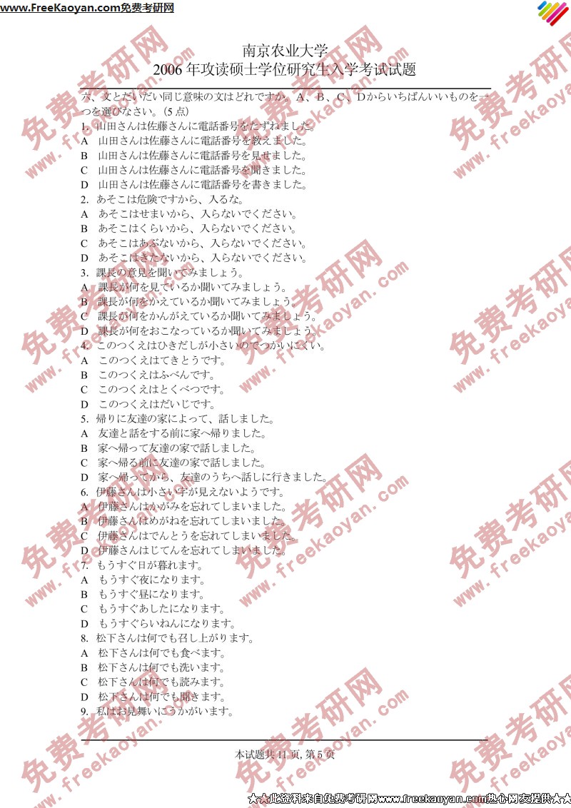 专业课考研经验 本站小编 FreeKaoyan 2018-01-23南京农业大学2006年考研真题-日语读解与写作