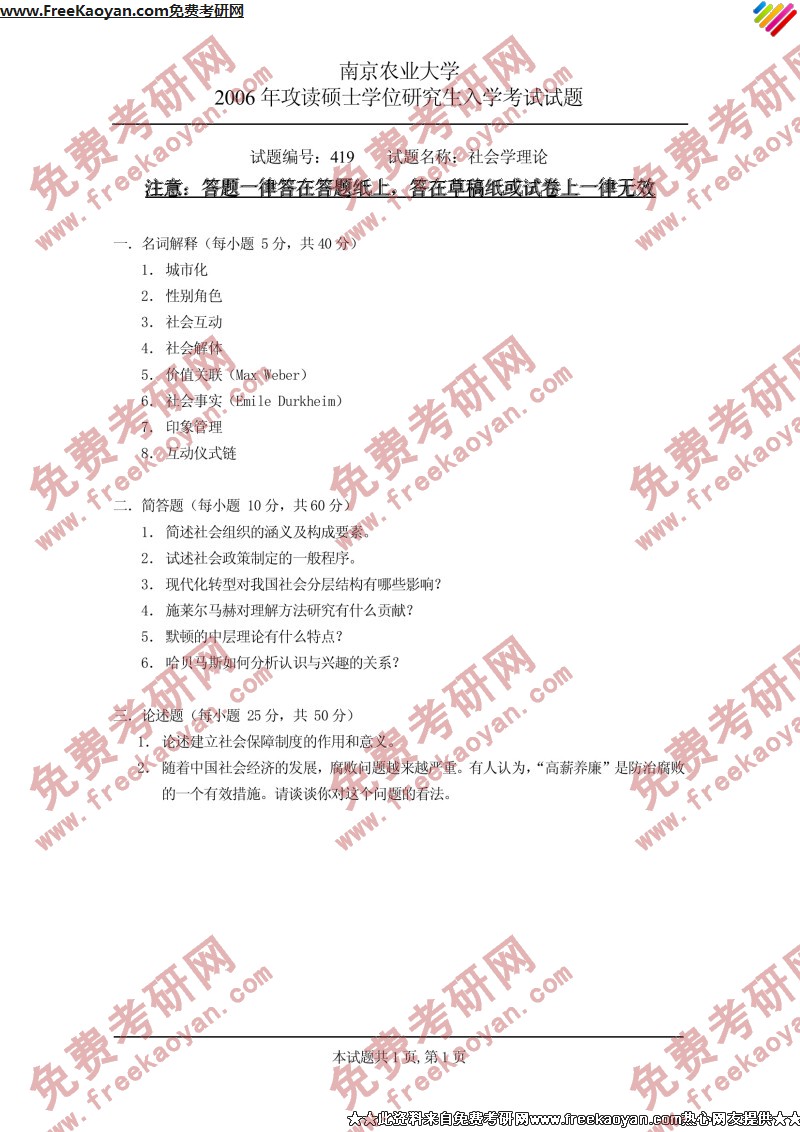专业课考研经验 本站小编 FreeKaoyan 2018-01-23南京农业大学2006年考研真题-教育学