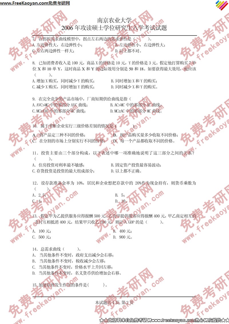 专业课考研经验 本站小编 FreeKaoyan 2018-01-23南京农业大学2006年考研真题-土地经济学