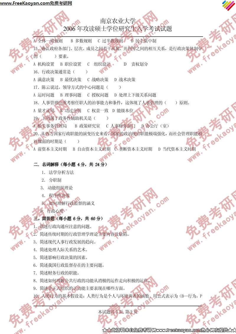 南京农业大学2006年考研真题-行政管理学(2)