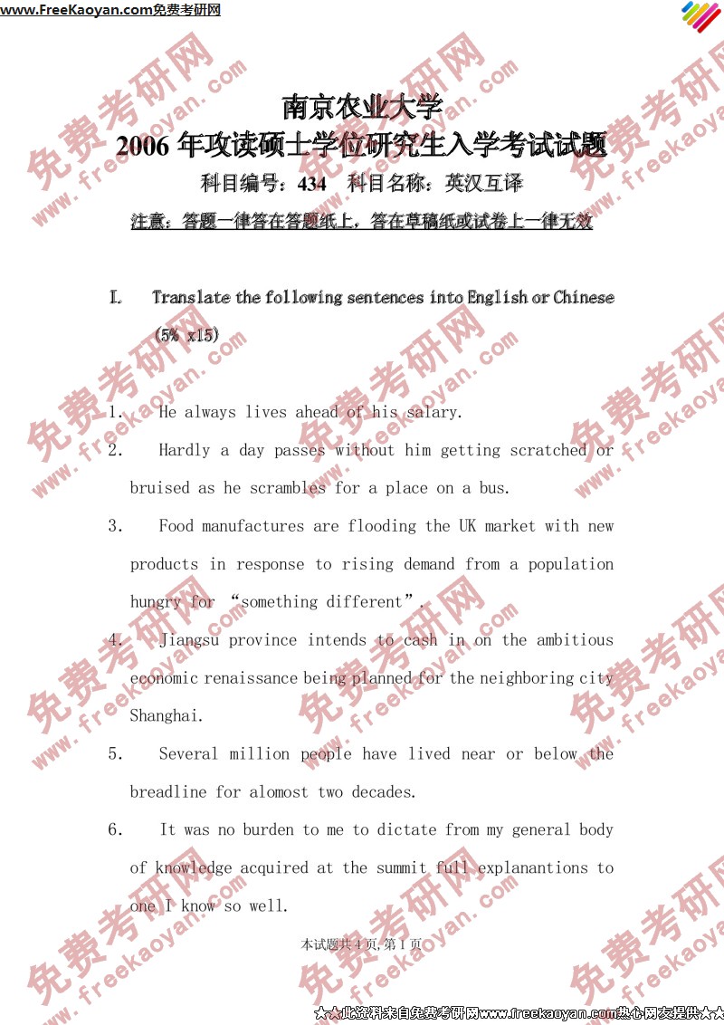 专业课考研经验 本站小编 FreeKaoyan 2018-01-23南京农业大学2006年考研真题-文献信息学