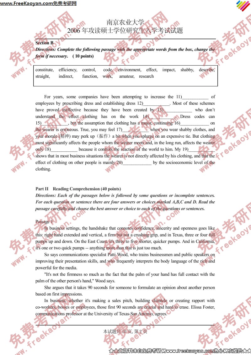 专业课考研经验 本站小编 FreeKaoyan 2018-01-23南京农业大学2006年考研真题-土壤学