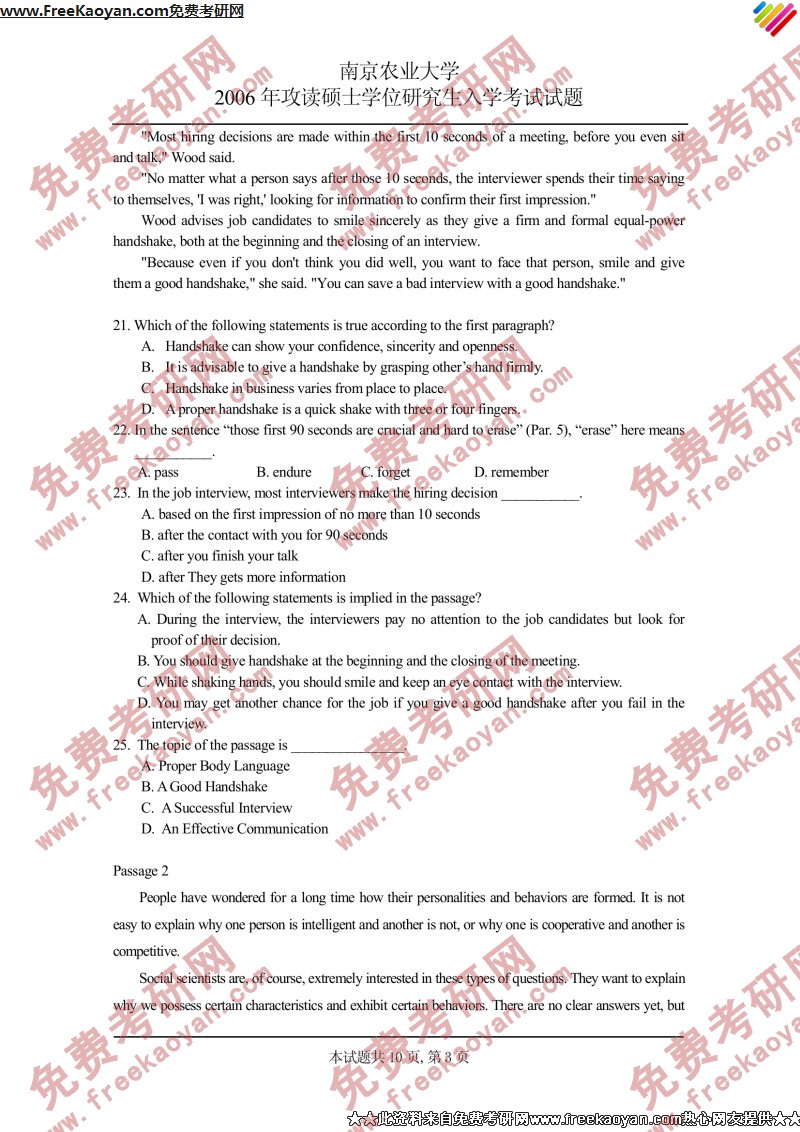 相关话题/南京农业大学 考研真题 英语