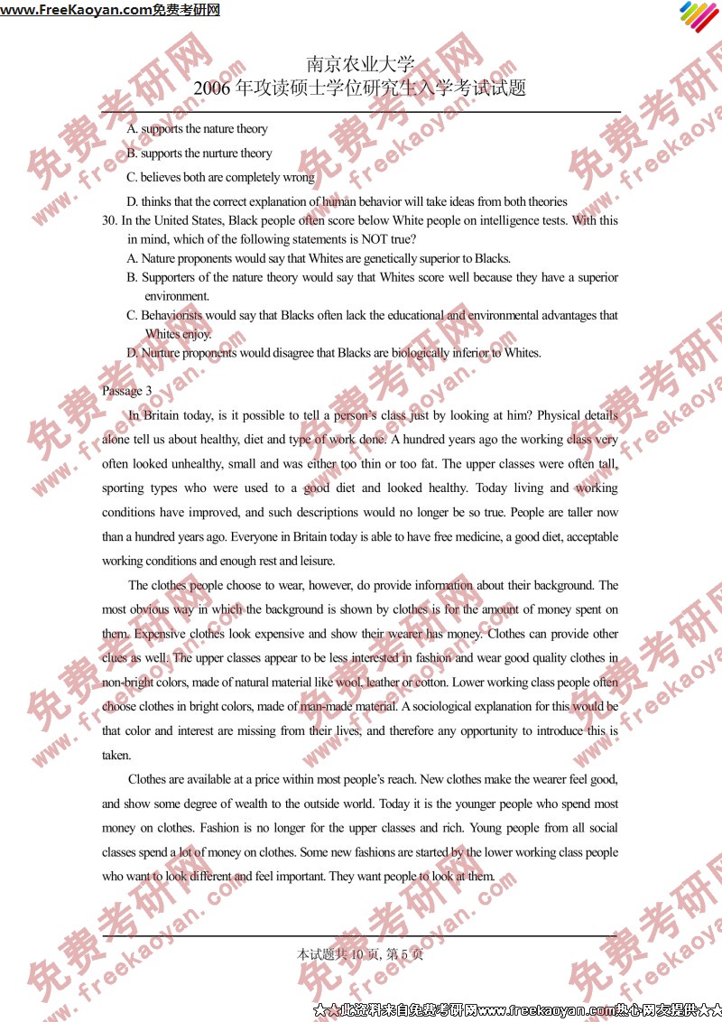相关话题/南京农业大学 考研真题 英语