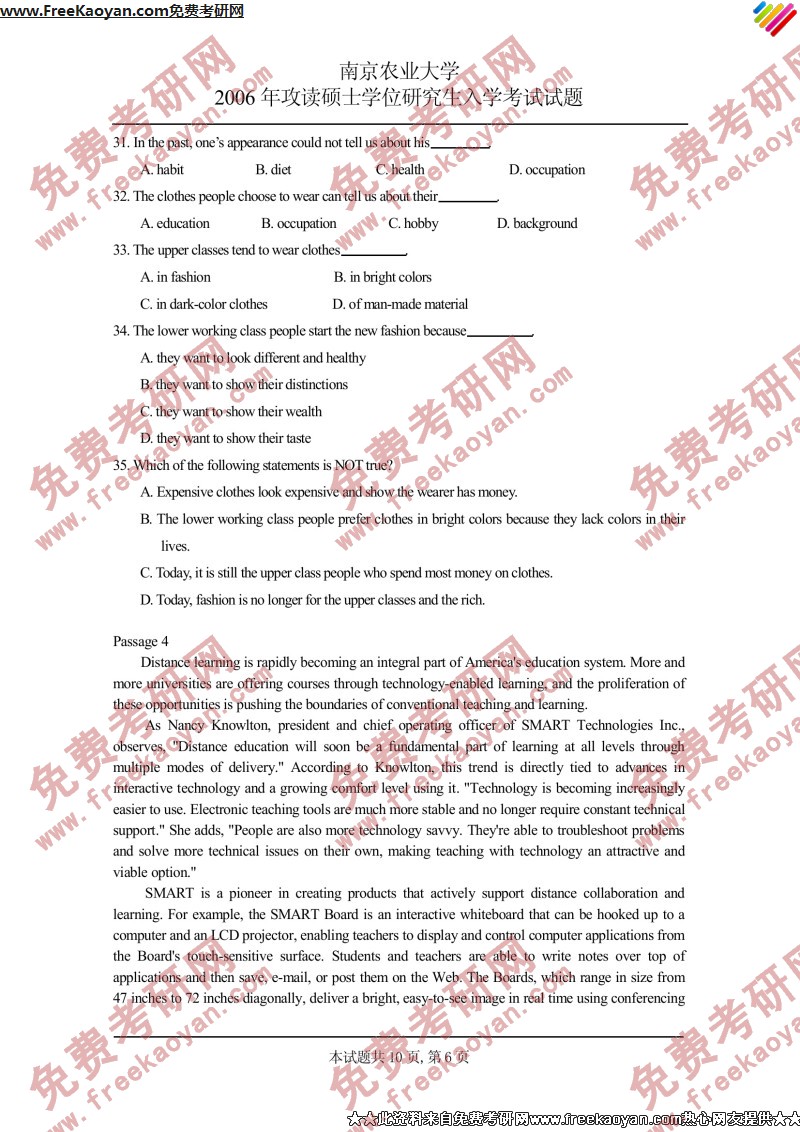 专业课考研经验 本站小编 FreeKaoyan 2018-01-23南京农业大学2006年考研真题-土壤学