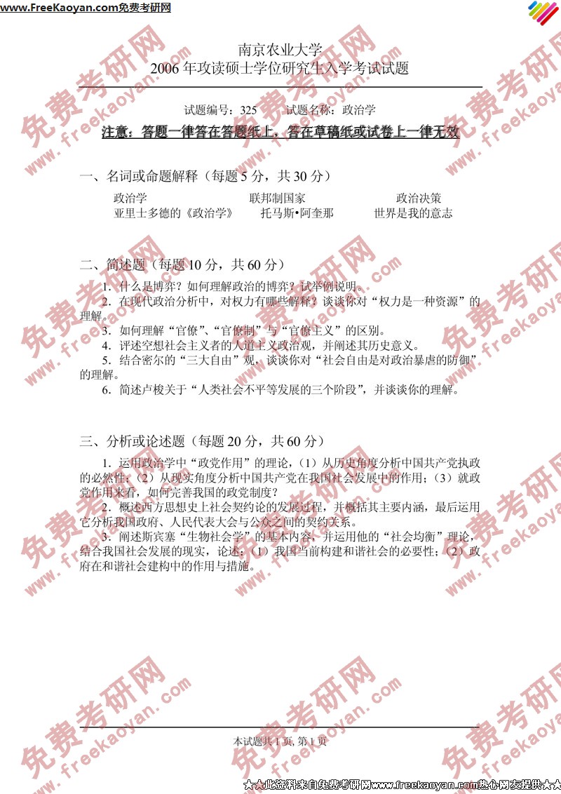 相关话题/南京农业大学 考研真题 政治学