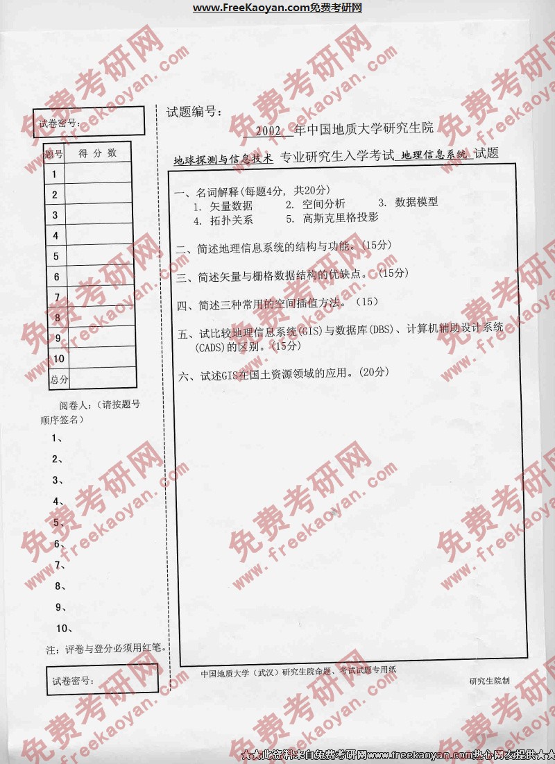 中国地质大学(武汉)2002年考研真题-地理信息系统