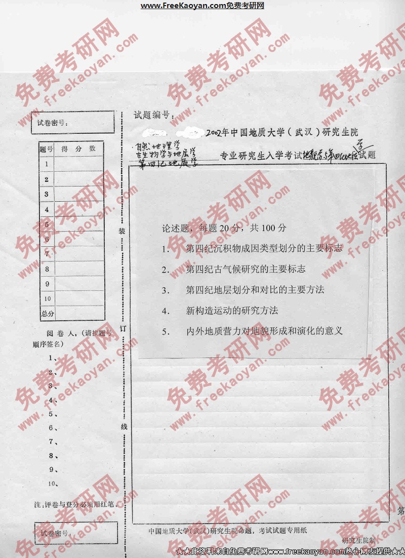 中国地质大学(武汉)2002年考研真题-地貌学与第四纪地质学