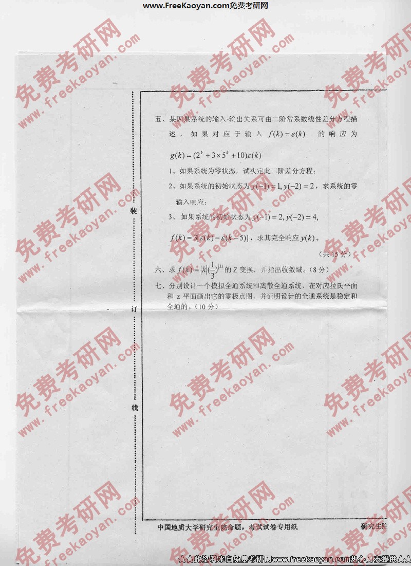 相关话题/考研真题 中国地质大学 信号与系统 电路