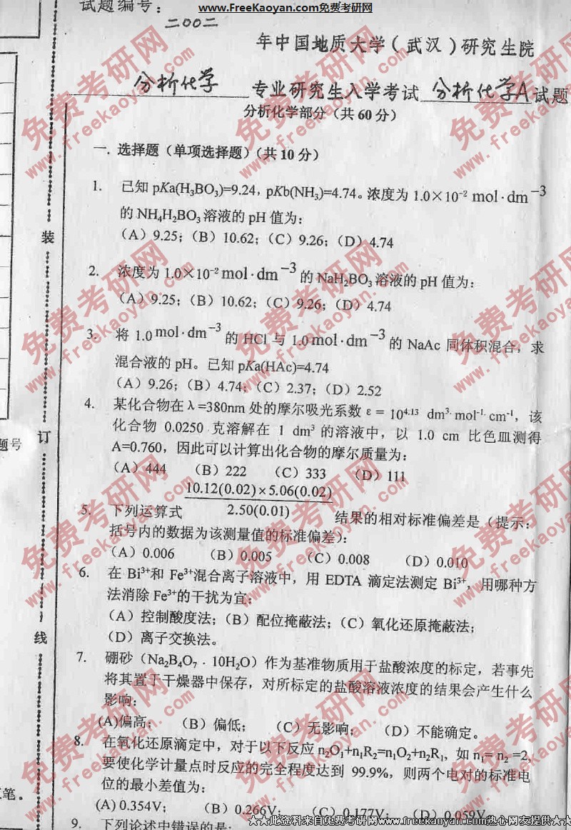 专业课考研经验 本站小编 FreeKaoyan 2018-01-23中国地质大学(武汉)2002年考研真题-地球化学