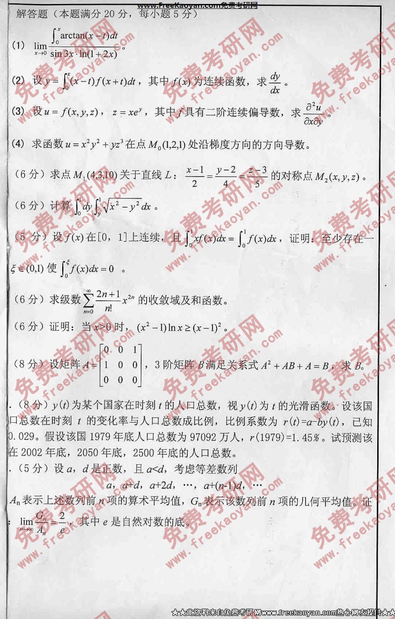 中国地质大学(武汉)2002年考研真题-高等数学(2)