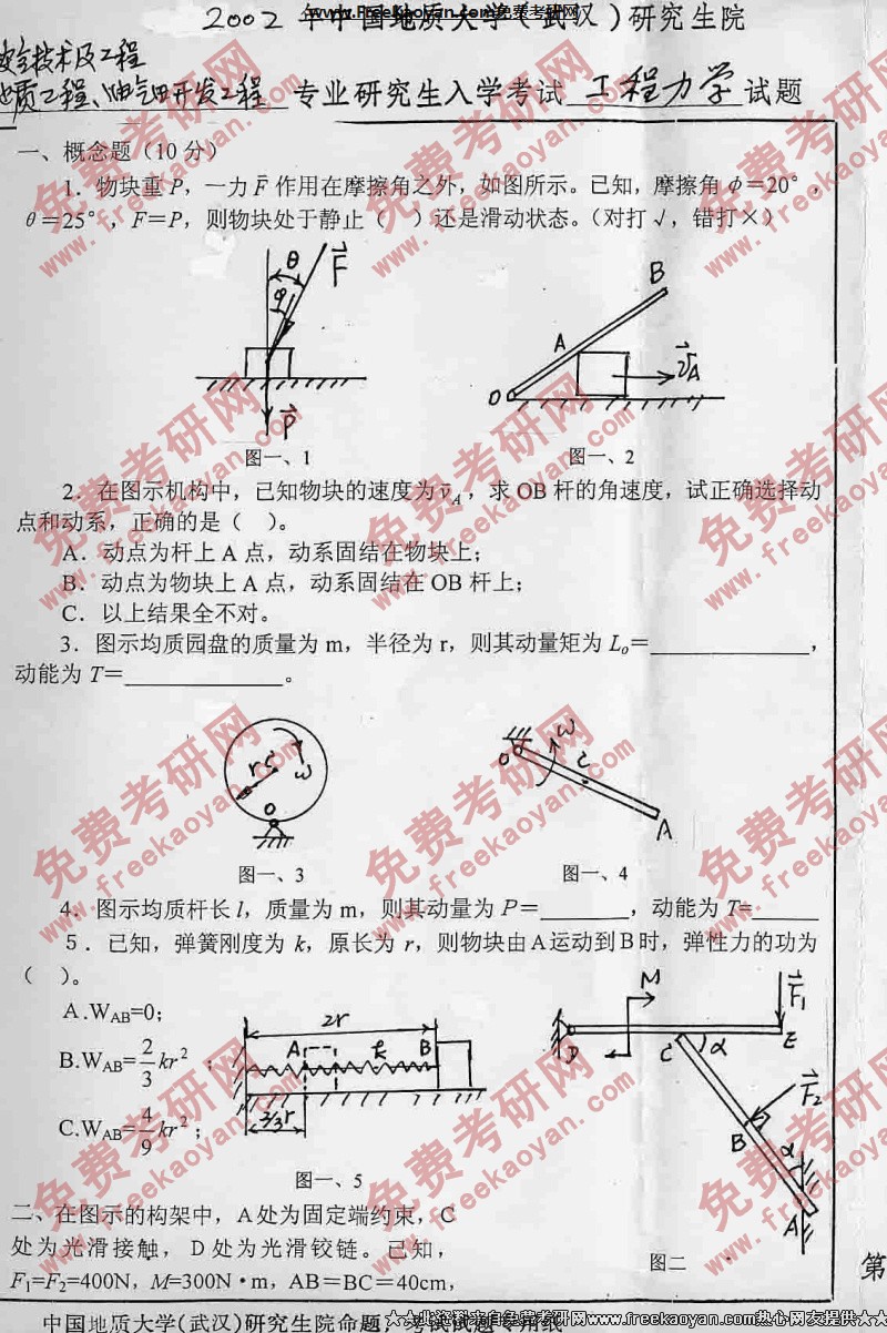 中国地质大学(武汉)2002年考研真题-工程力学(3)