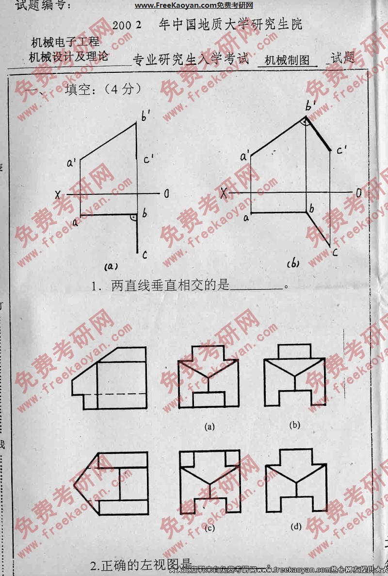 专业课考研经验 本站小编 FreeKaoyan 2018-01-23中国地质大学(武汉)2002年考研真题-机械设计
