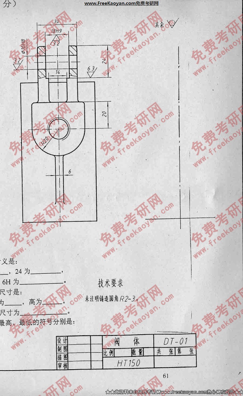 中国地质大学(武汉)2002年考研真题-机械制图(6)