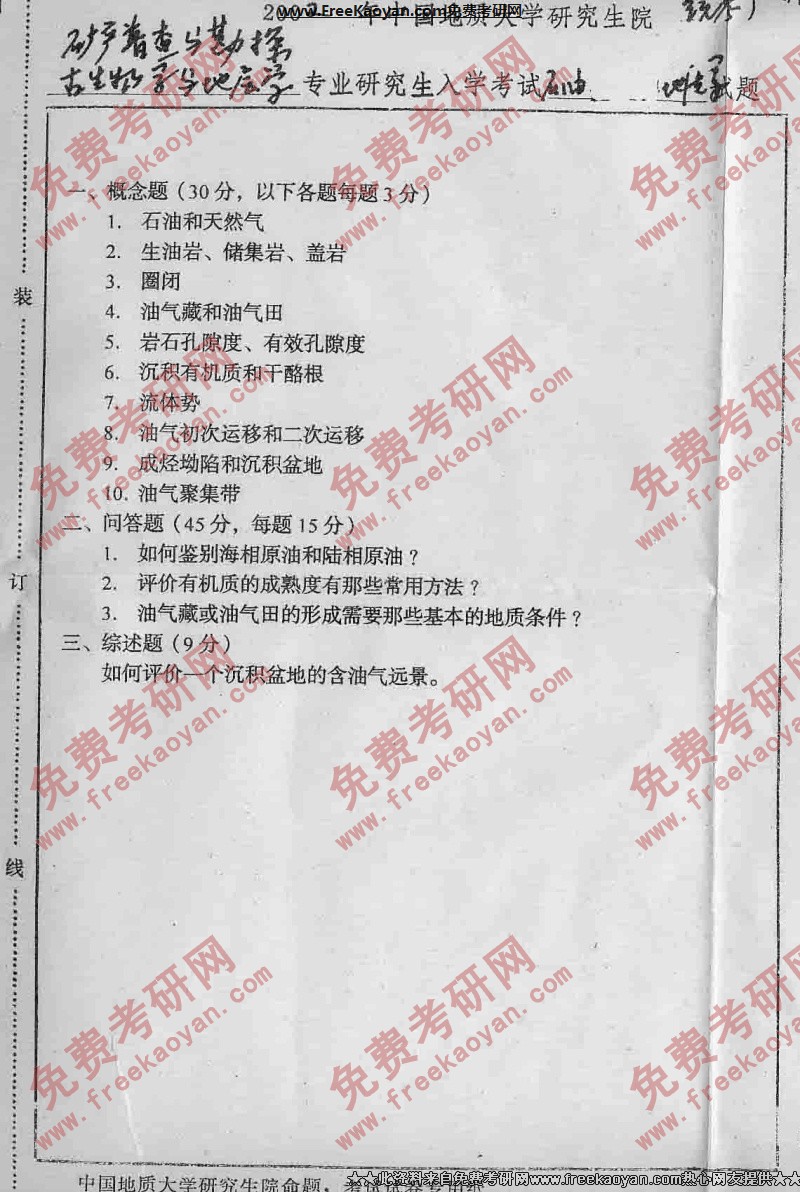 相关话题/石油 考研真题 中国地质大学 天然气 地质学