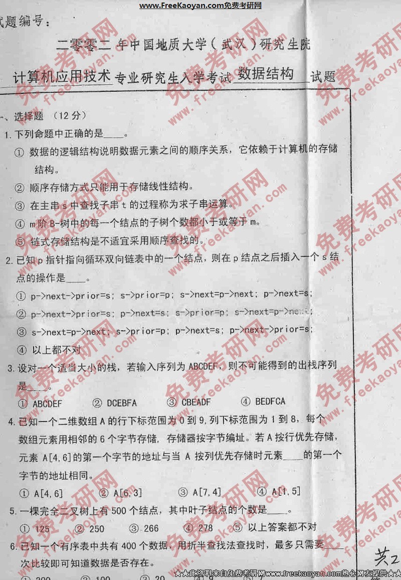 专业课考研经验 本站小编 FreeKaoyan 2018-01-23中国地质大学(武汉)2002年考研真题-国土资源学